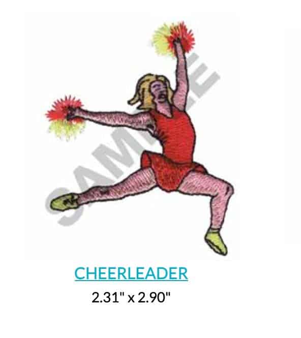 The Cheerleader measures 2.31″ W _ 2.90″ H / 58.7 _ 73.7 mm and adds an athletic touch to shirts, tote bags, and team gear. Stitches smoothly on cotton, canvas, or fleece for a clean professional finish.