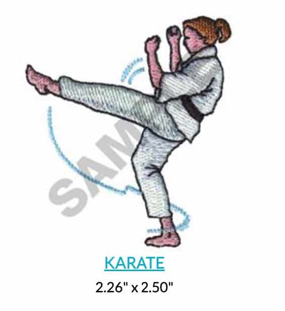 Karate embroidery design perfect for sports apparel and accessories.