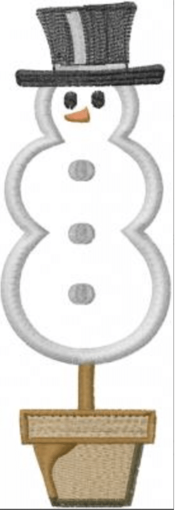 Whimsical snowman and tree applique design for holiday decor.